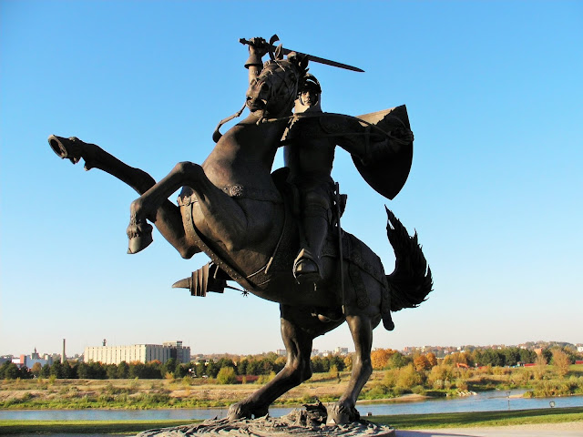 考纳斯城堡前,维陶塔斯大帝(Vytautas the Great,1350年-1430年)雕像面朝著城堡,中世纪 立陶宛 最强有力的统治者之一,他的头衔虽为公爵,却在其领土内享有和国王一样的权利。