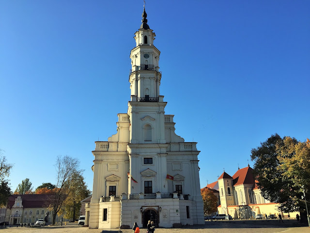 首先到了考納斯市政厅建于1542年,大楼高53米,属晚期巴洛克式建筑,并带有早期古典主义和哥特式建筑风格。市政厅在沙皇统治时期,被改为东正教教堂,1837年曾作为沙皇的行宫。1970年重建,现为陶器博物馆和婚礼殿堂。