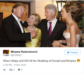 Melania在1996年移民到美国,会说五种语言:斯洛文尼亚语,英语,法语,塞尔维亚语和德语,是第一个“母语不是英语”的总统夫人。从98年开始和川普约会,在2005年,他们举办了一场婚礼,邀请了350的宾客,其中就包括克林顿夫妇。当时四人相谈甚欢。谁能想到川普和希拉里在十一年后的今天这样对撕?
