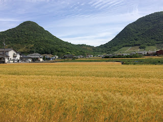 四国就是這樣:「一片烏雲飄過來,下起小雨。 以為雲很快會飄走,所以大家沒打算拿雨衣出來穿, 沒想到雨勢愈來愈大,只好穿上雨衣。才穿上雨衣不久, 就雨過天晴了。不甘心白忙一場的我們穿雨衣走了一陣, 實在覺得悶了才脫下,但脫下不久,雨又開始下了! 感覺天氣在跟我們玩躲貓貓。」變幻莫測,挺親切嘀 。
