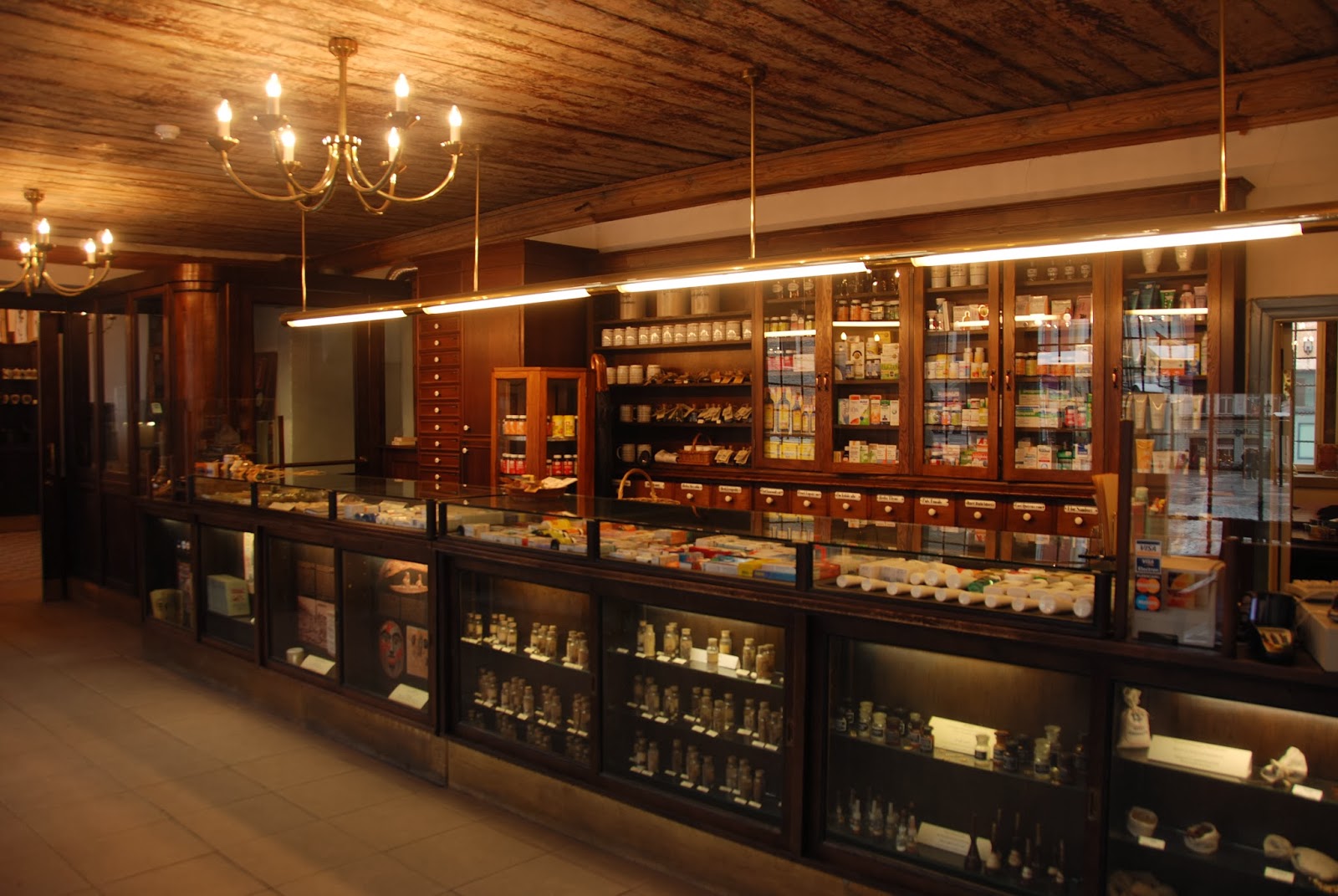 接著跟著妹妹急步走,以為她带我找廁所,不是耶,找的是广场边上大名鼎鼎的古老药房,它自1422年建立以来欧洲最古老药房,现在则是一家药剂博物馆。裡面面積不大,只有一裏一外套间,外间依然是作为药房使用,售卖常用的药品。