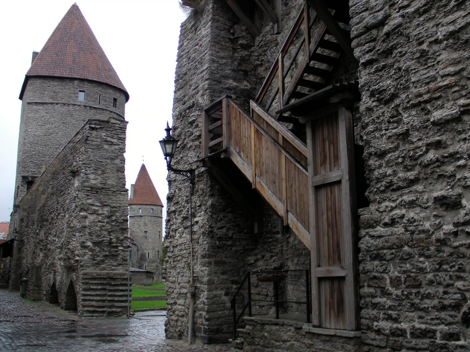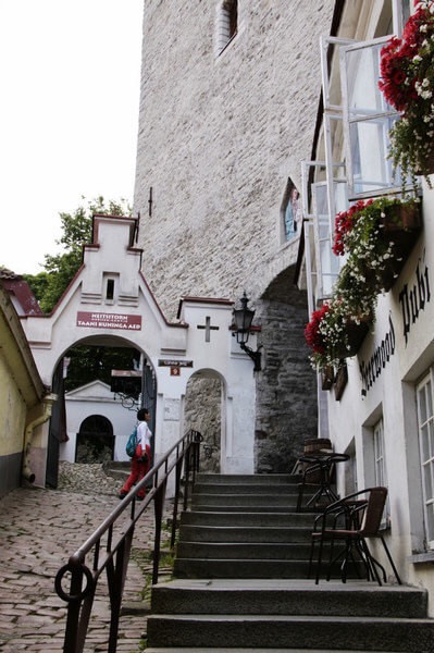 果真半途中有個小堡,进去后爬幾步台階就轉到了長腿街,长腿街(Pikk jalg)。這道古門非常厚重,用來分隔上城區(富人住的地區)與下城區(工商勞工階層居住),中世紀時是鎖上,长腿街(Pikk jalg)下方也有一道関卡不許窮人到上城區