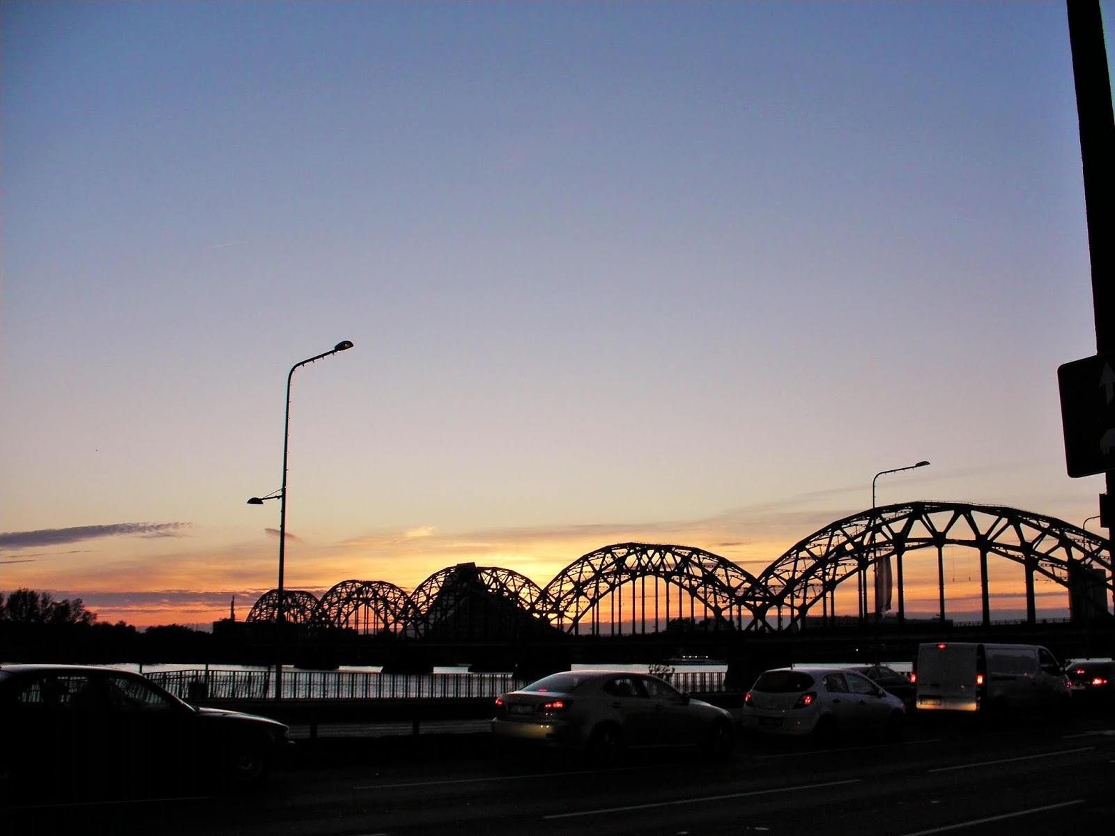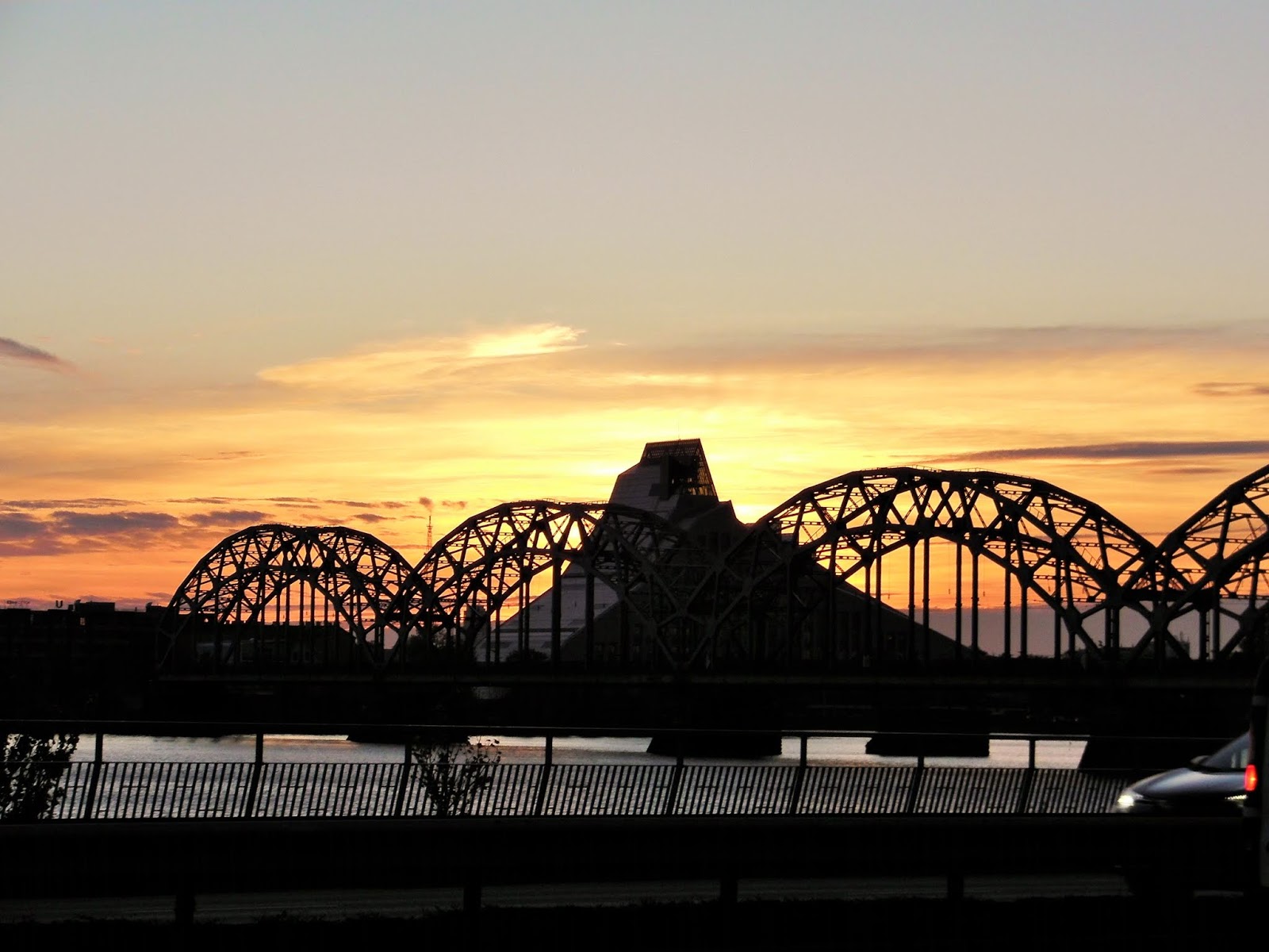 我们在Sigulda遊玩了四小时,还是有許多景點没能遊完。傍晚搭16:45的火車返回Riga(里加),走出火車站,追看道加瓦河上的落日。