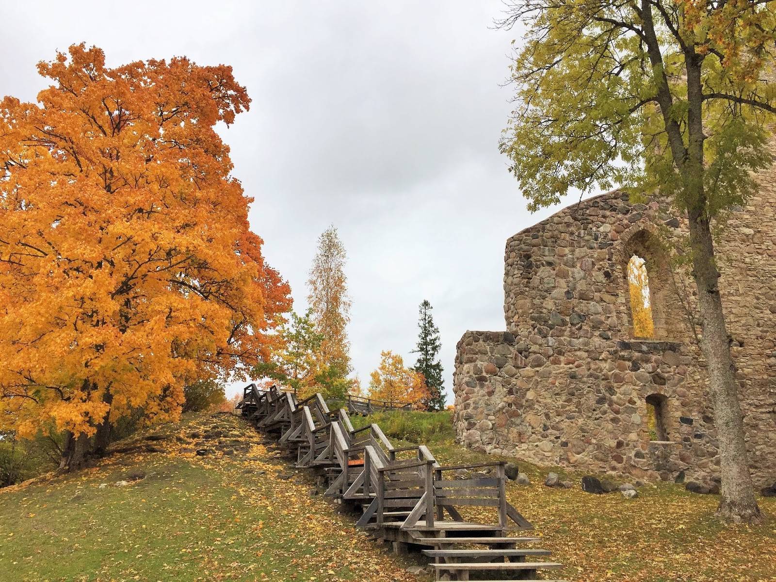 我觉得这回來到「上帝的花园」可以說是来得巧。无意间买了十月份的特价飞机票,來到才知道十月份是歐洲旅遊的淡季,然而对我们来讲却是难得一遇的赏枫好时光,一路从爱沙尼亞进到拉脱维亚,随处可见高大䓛壮的枫树,令人目不暇給!